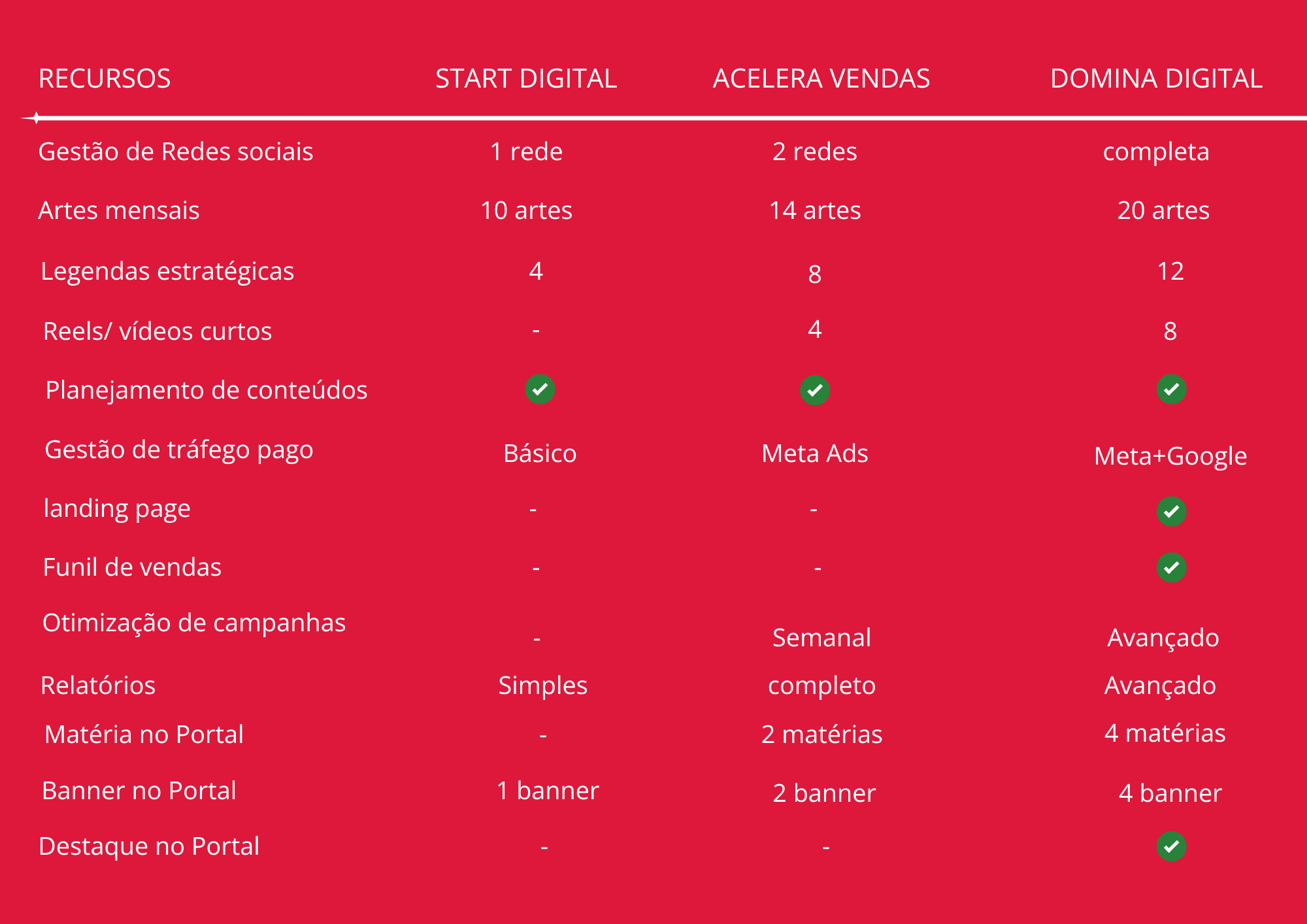 Ideal para: pequenos negócios que precisam começar rápido. Gerar presença e primeiros leads